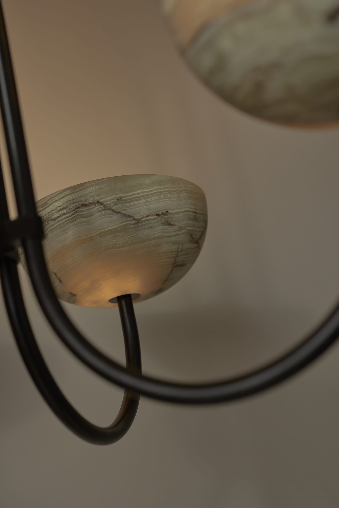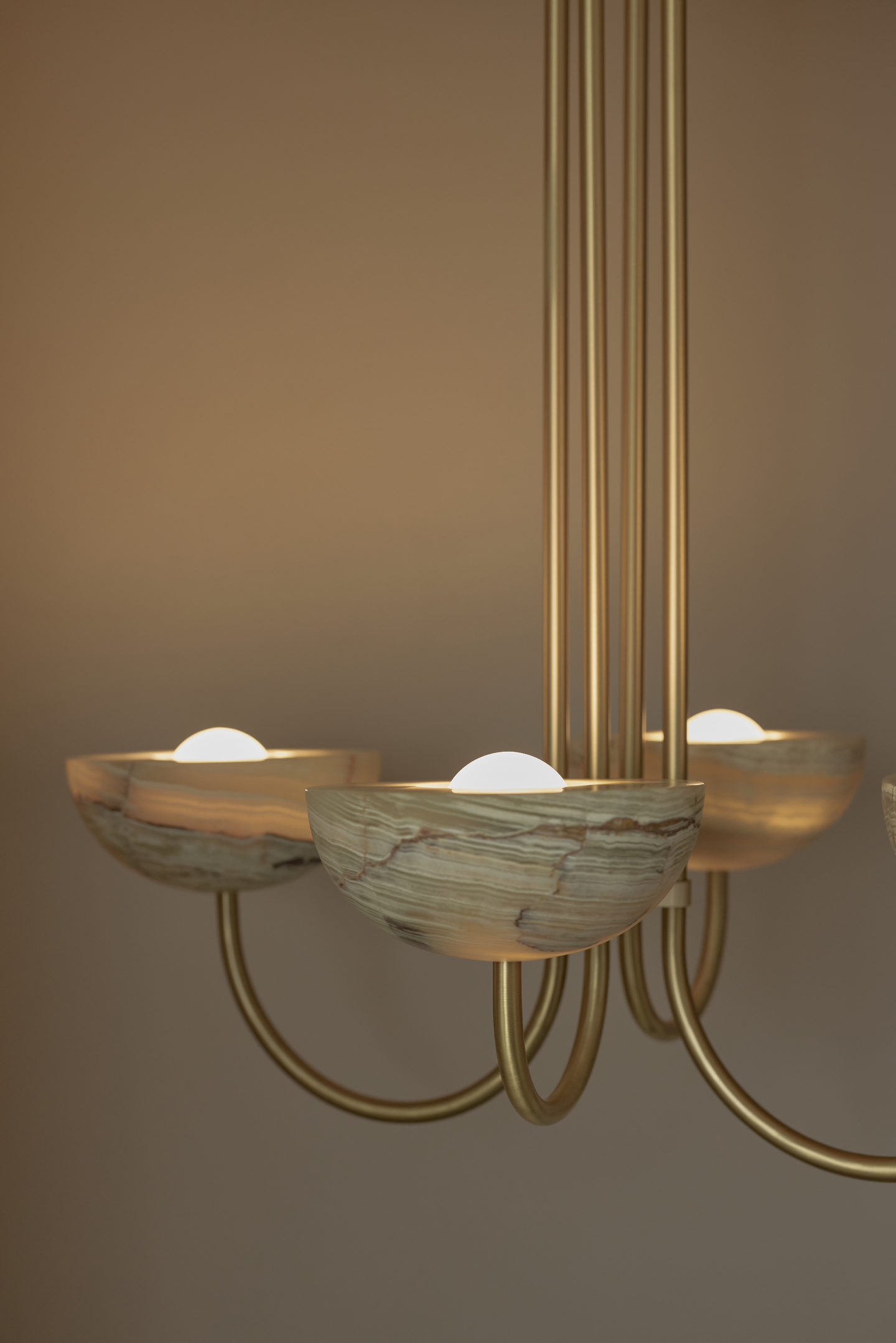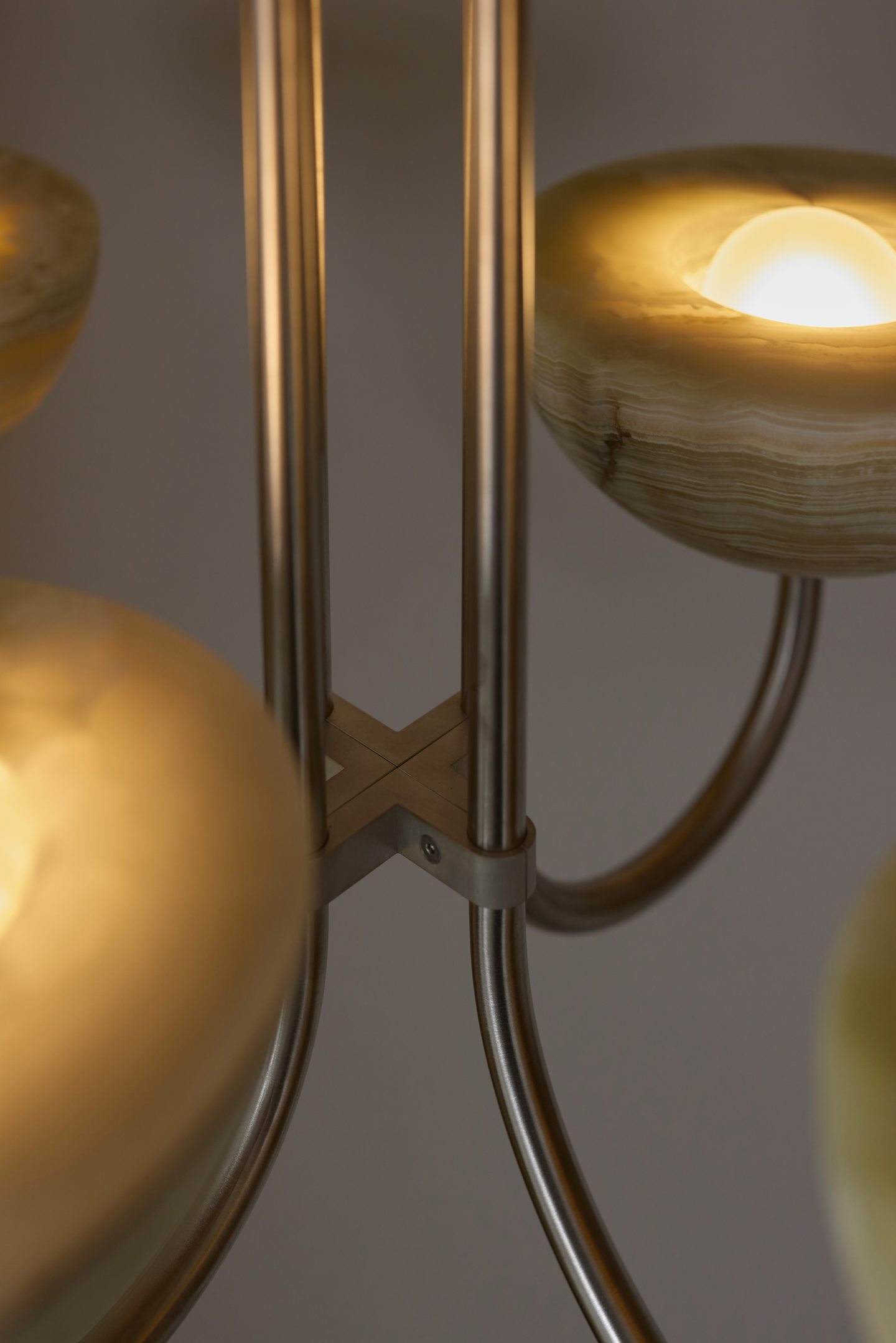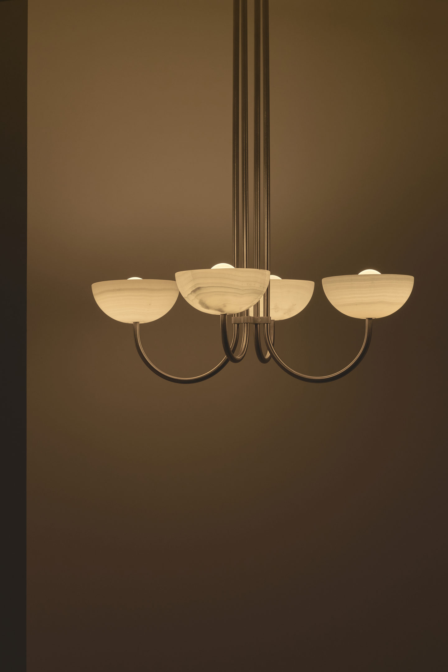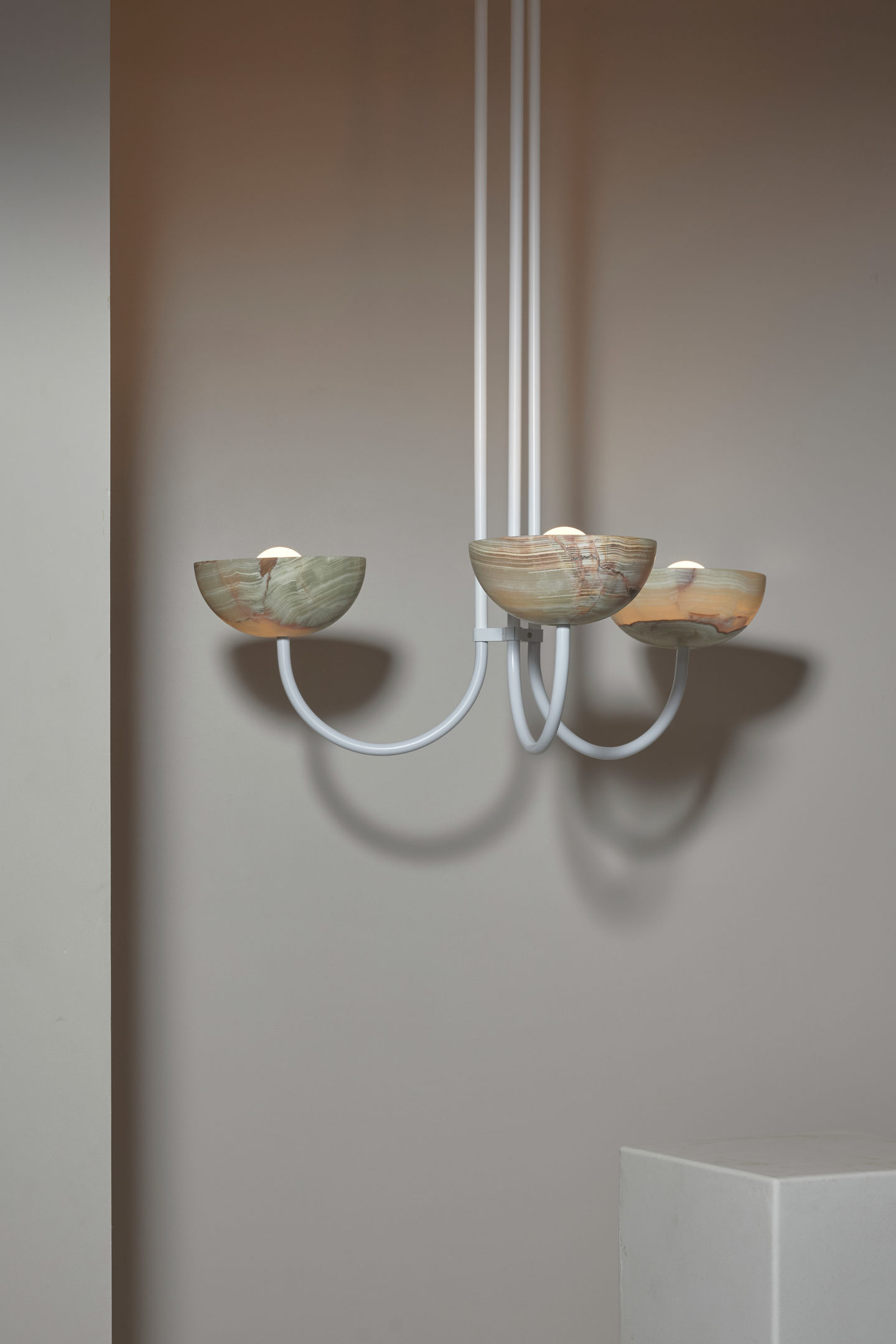 Each piece is paired with suspension rods in brass, brushed black, white satin, or brushed nickel.