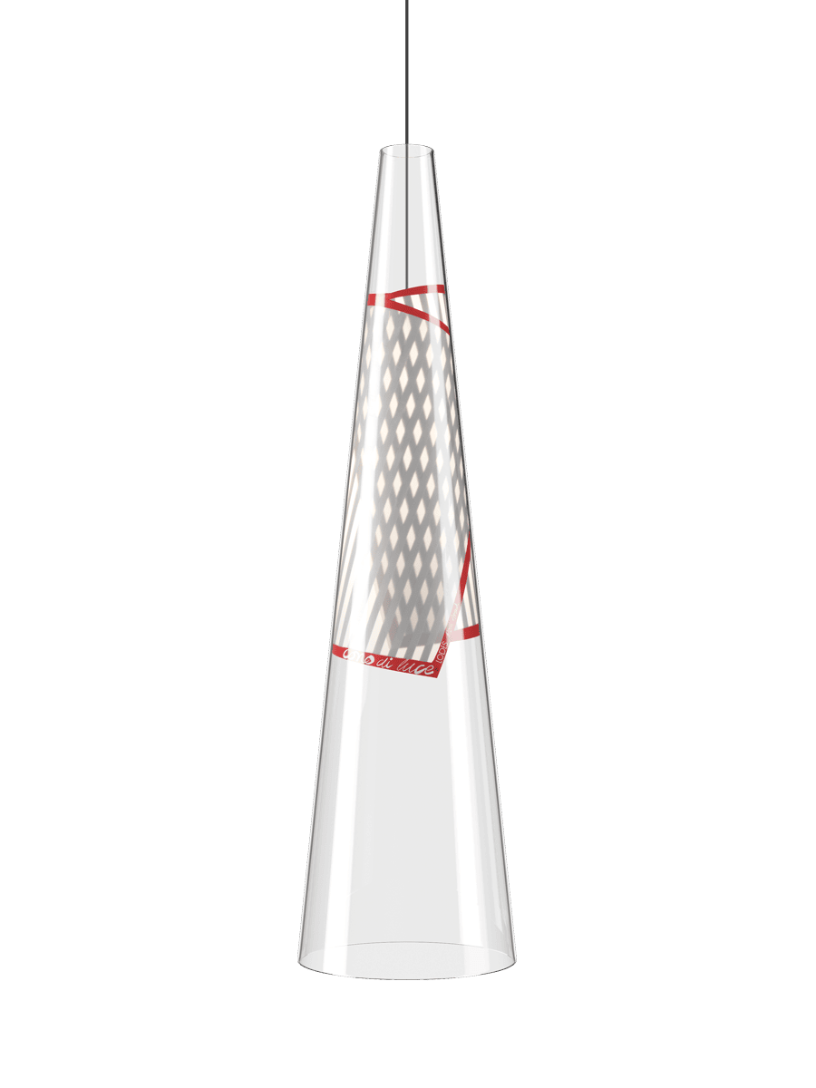 The technology enclosed in Cono di Luce defines its identity. Using a flexible printed circuit board in a groundbreaking way, encapsulated within an element as simple as a transparent Pyrex® cone, the lamp exudes a dualism between on and off that is easily discernible.